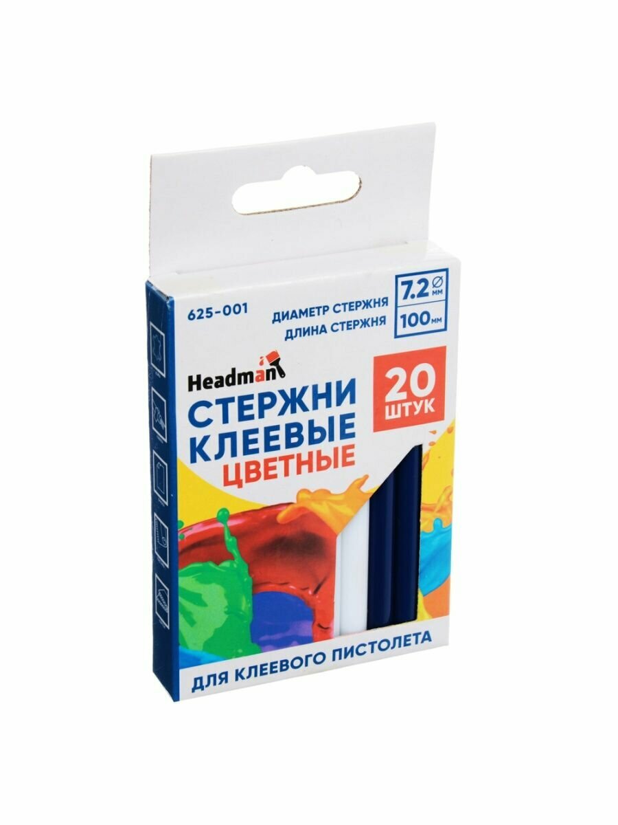 Стержни клеевые 20шт, 7,2x100мм, цветные, набор на блистере HEADMAN