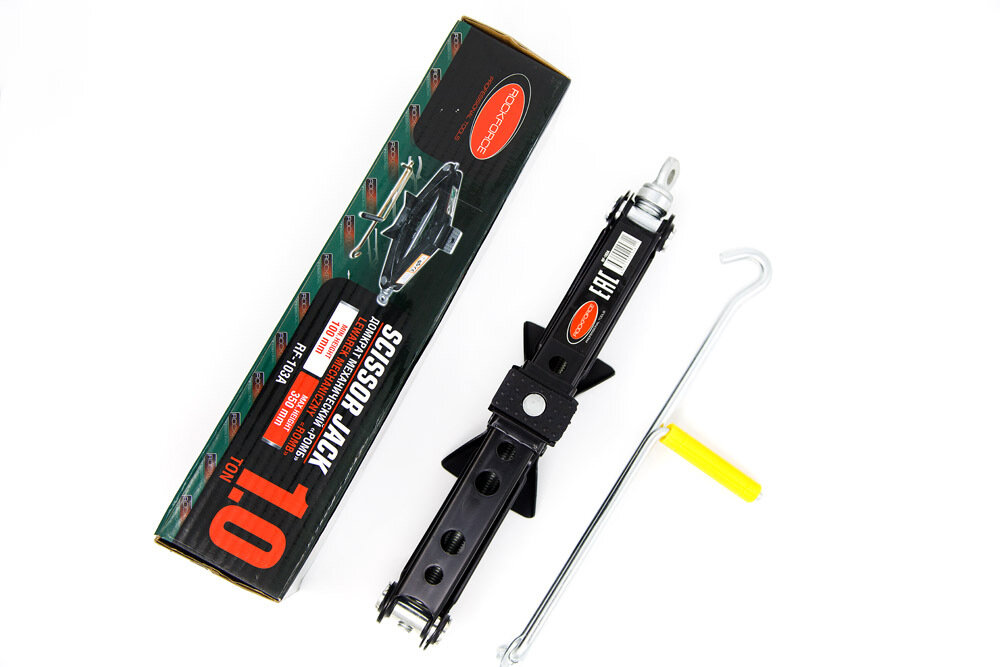 Домкрат RF-103A механический "ромб" с резиновой накладкой 1т (h min 100мм, h max 350мм, L-385мм) ROCKFORCE /1 NEW