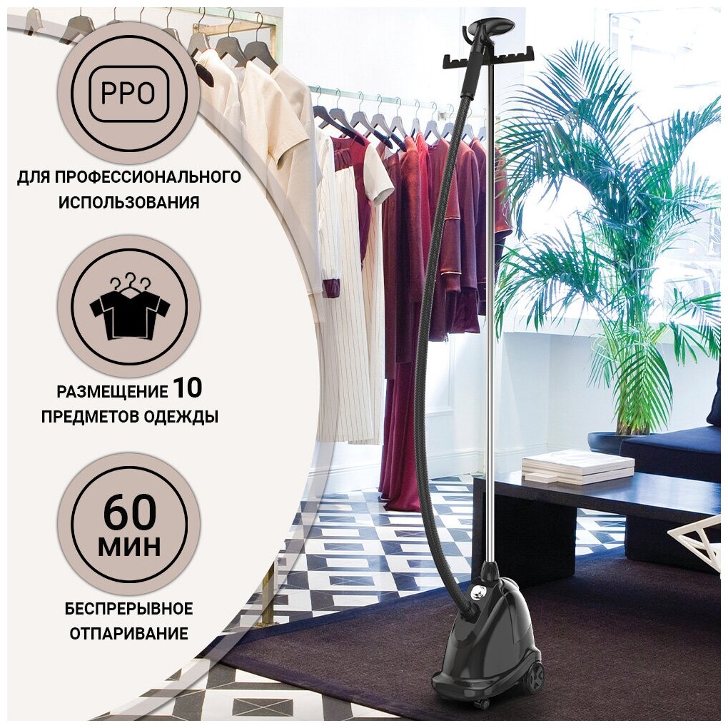 Профессиональный отпариватель для одежды вертикальный напольный SteamOne Pro2000 2,5 л, на колесиках, черный