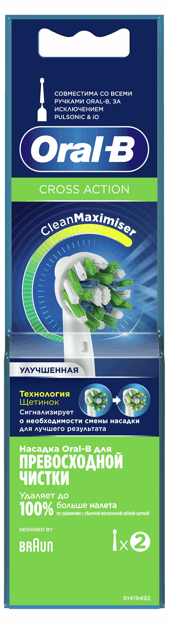 Насадка для электрической зубной щетки Oral-b Cross Action CleanMaximizer, 2шт