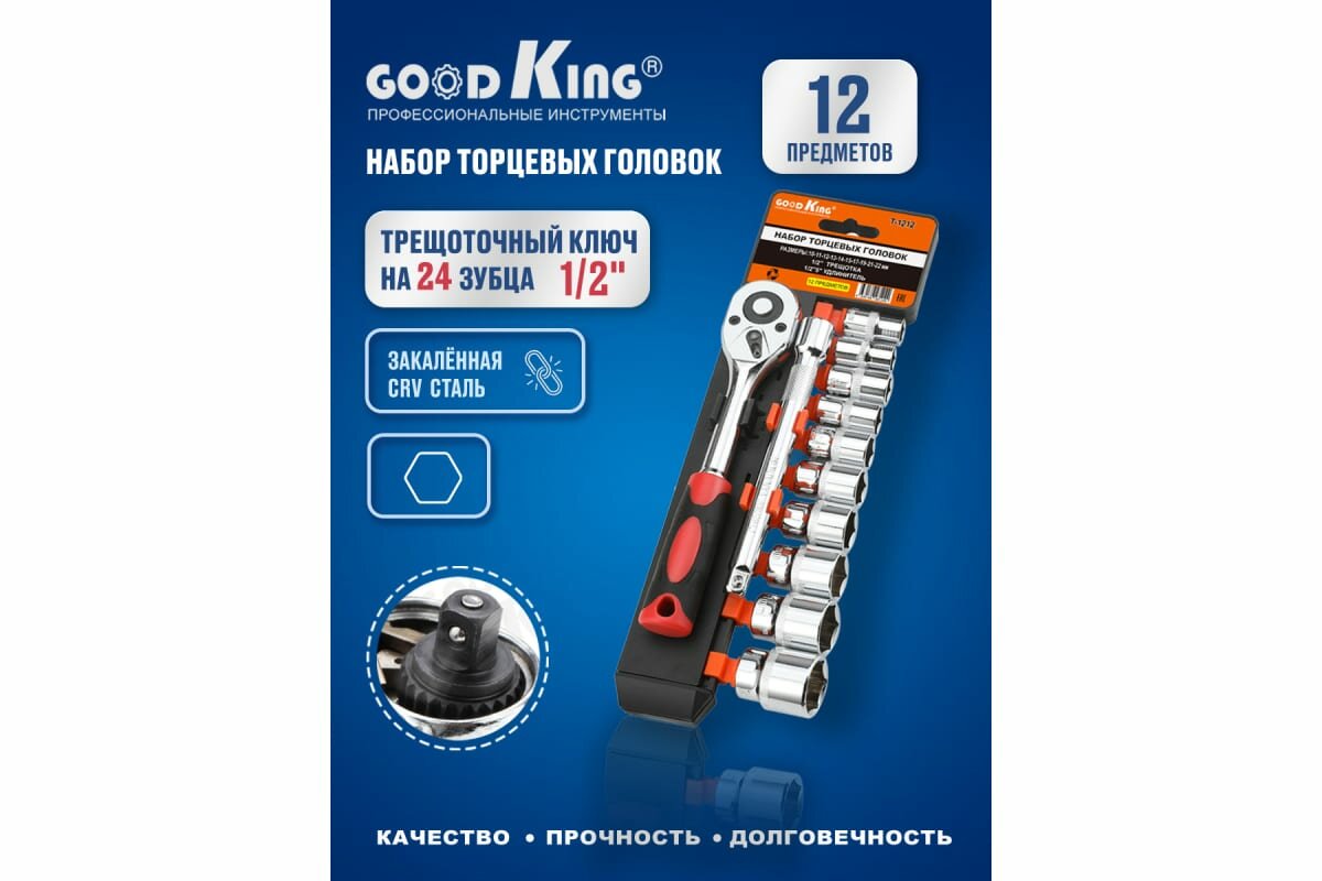 Набор торцевых головок Goodking GOOKING T-1212, 12 предметов с трещоткой 1/2 дюйма и удлинителем интересное: