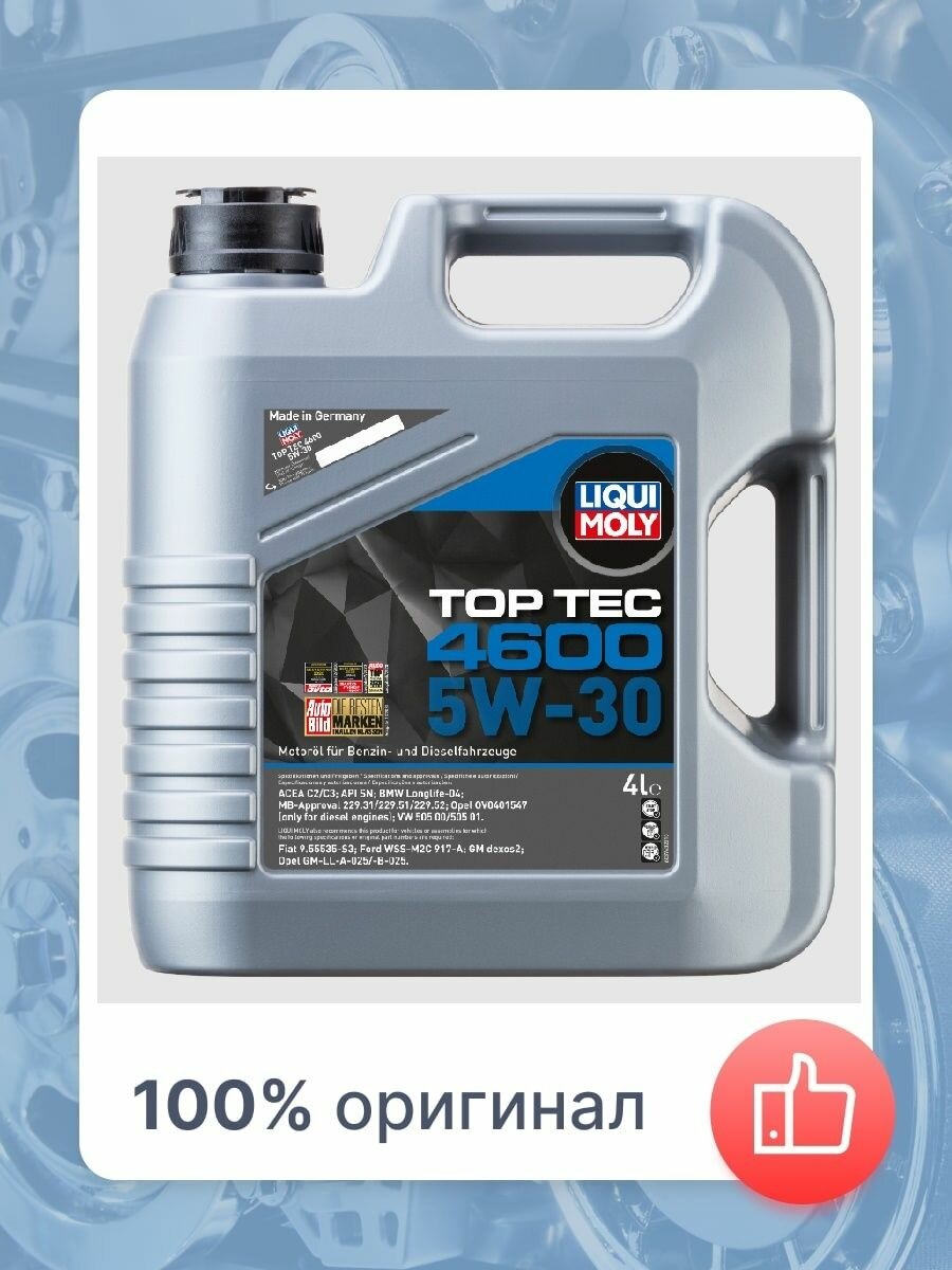 Ниже Вы можете прочитать отзывы на LIQUI MOLY 3763 Масло моторное Liqui Moly Top Tec 4600 5W-30 SN/CF, C3, Longlife-04, Dexos 2 - 4 л, ознакомится с подробными характеристиками, посмотреть интересные обзоры и фотографии на LIQUI MOLY 3763 Масло моторное Liqui Moly Top Tec 4600 5W-30 SN/CF, C3, Longlife-04, Dexos 2 - 4 л.