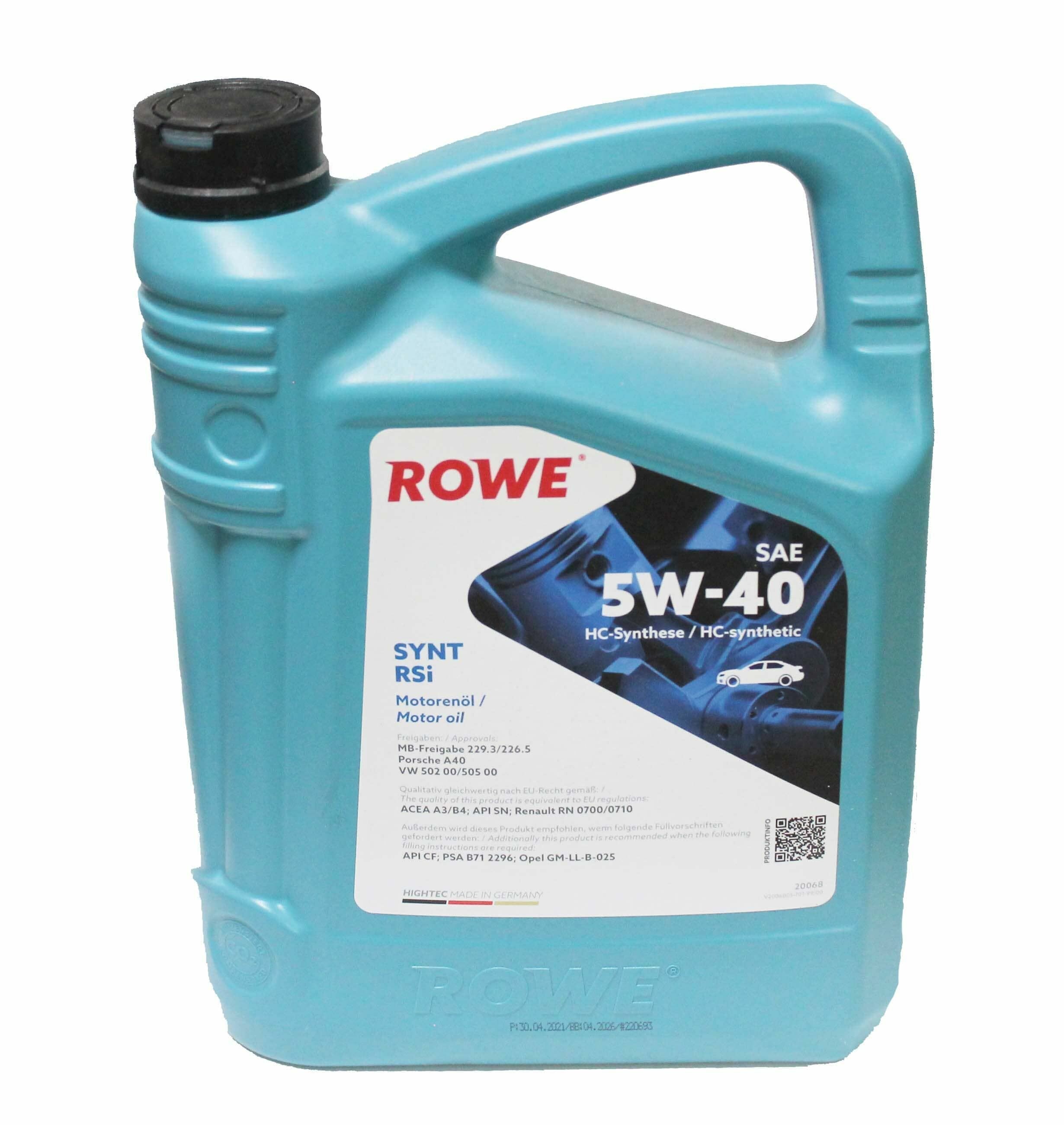 ROWE 20068-0050-99 Масло моторное 5W-40 ROWE 5л НС-синтетика HIGHTEC SYNT RSi A3/B4 1шт