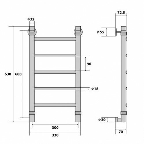 Полотенцесушитель водяной лесенка узкий Energy Classic 600x300, цвет хром, нержавеющая сталь, подключение 3/4"