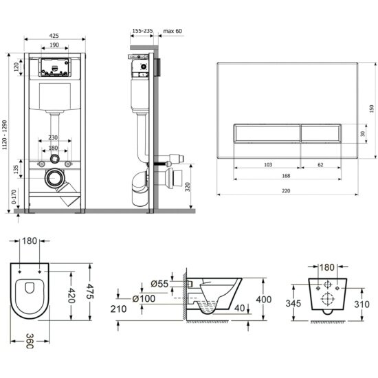 Подвесной унитаз комплект 6 в 1 Lavinia Boho Biore Compacto Rimless 75110150: унитаз, сиденье микролифт, инсталляция, кнопка, шумоизоляция