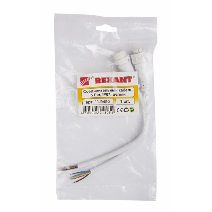 Соединительный кабель (5pin) герметичный (IP67) 5х0.5мм² белый REXANT 1 шт арт. 11-9450