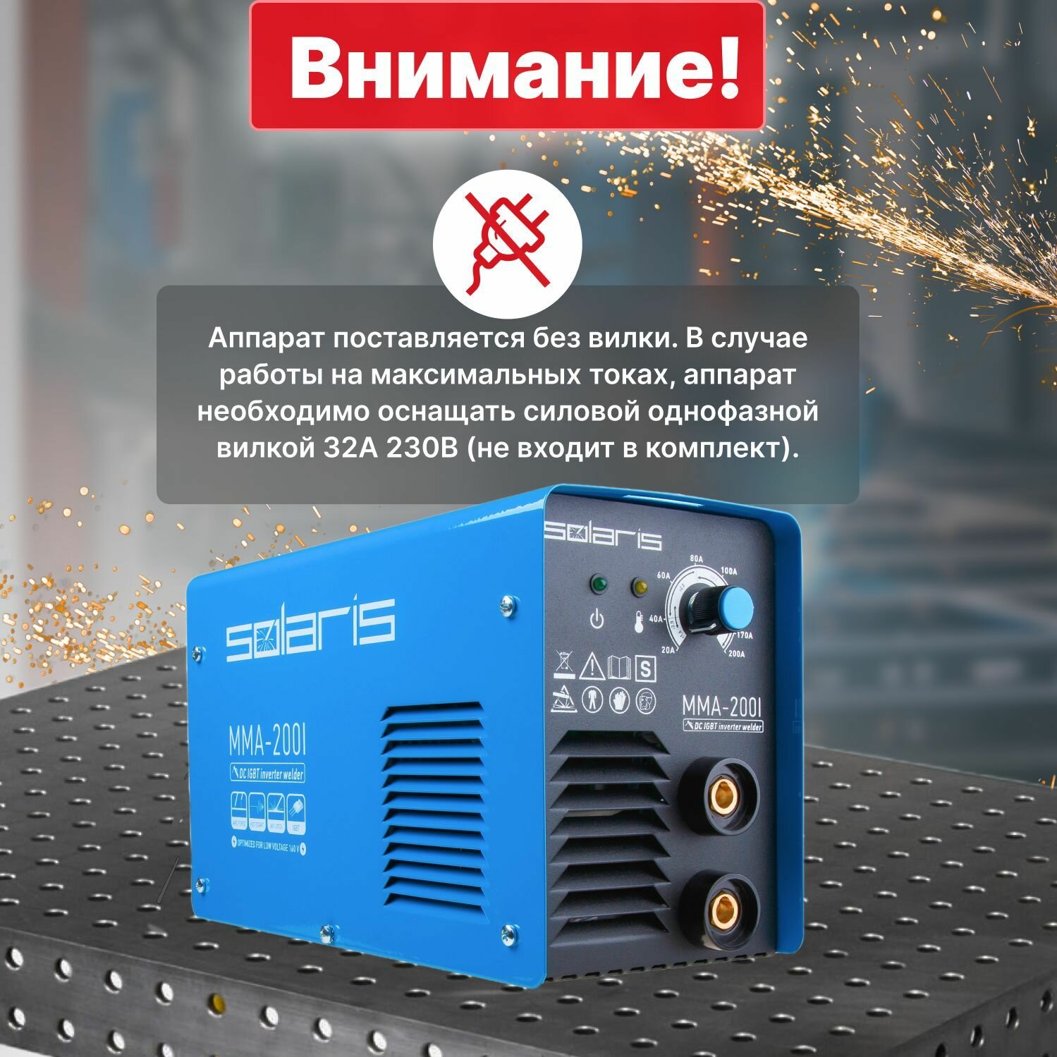 Инвертор сварочный SOLARIS MMA-200I (230В, 20-200 А, 70В, электроды диам. 1.6-4.0 мм, вес 3.4 кг)