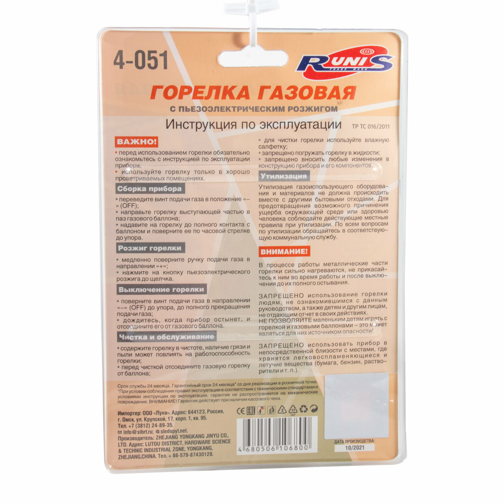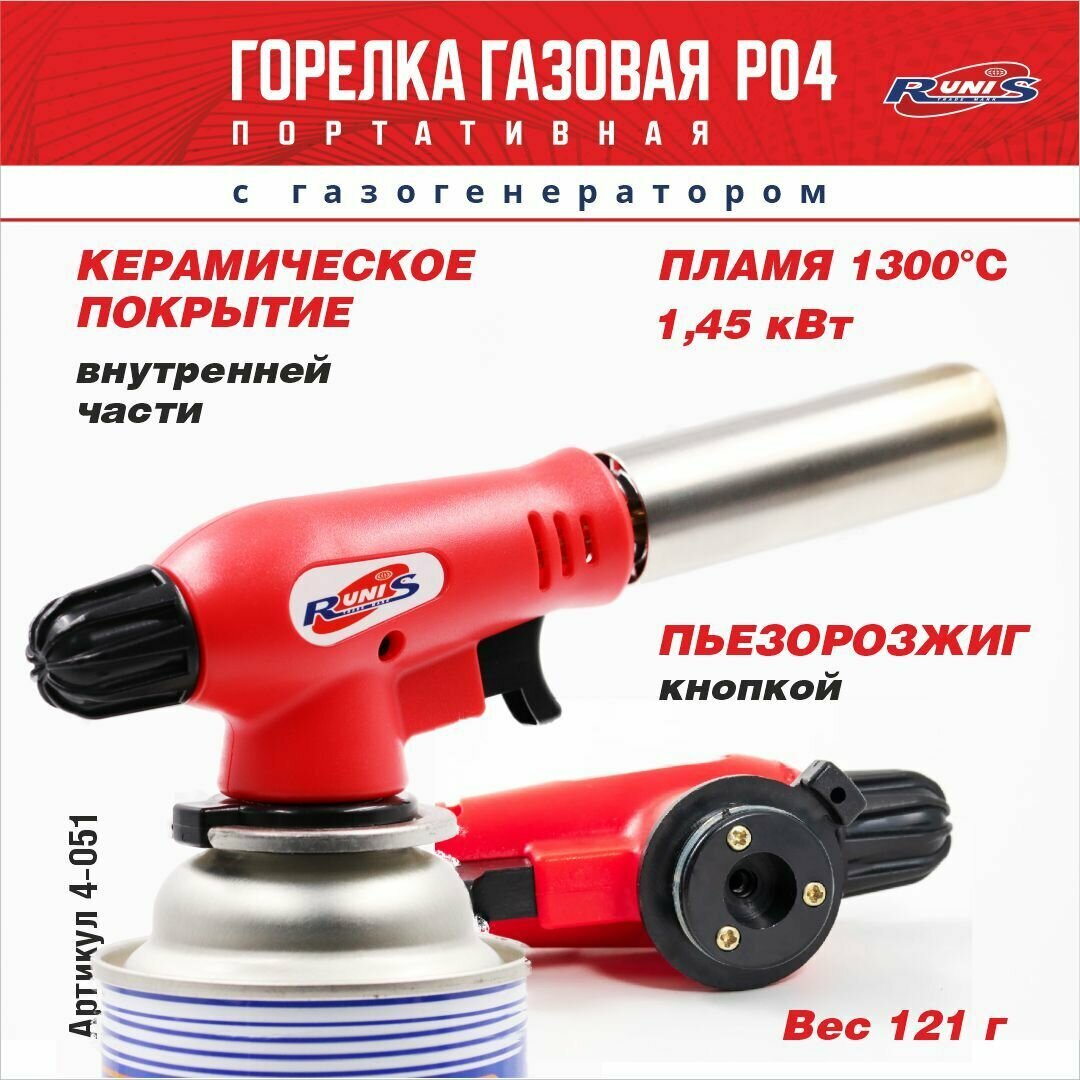 Горелка газовая (газогенератор) Premium P04 пьезоподжиг, на цанговый баллон RUNIS 4-051 интересное: