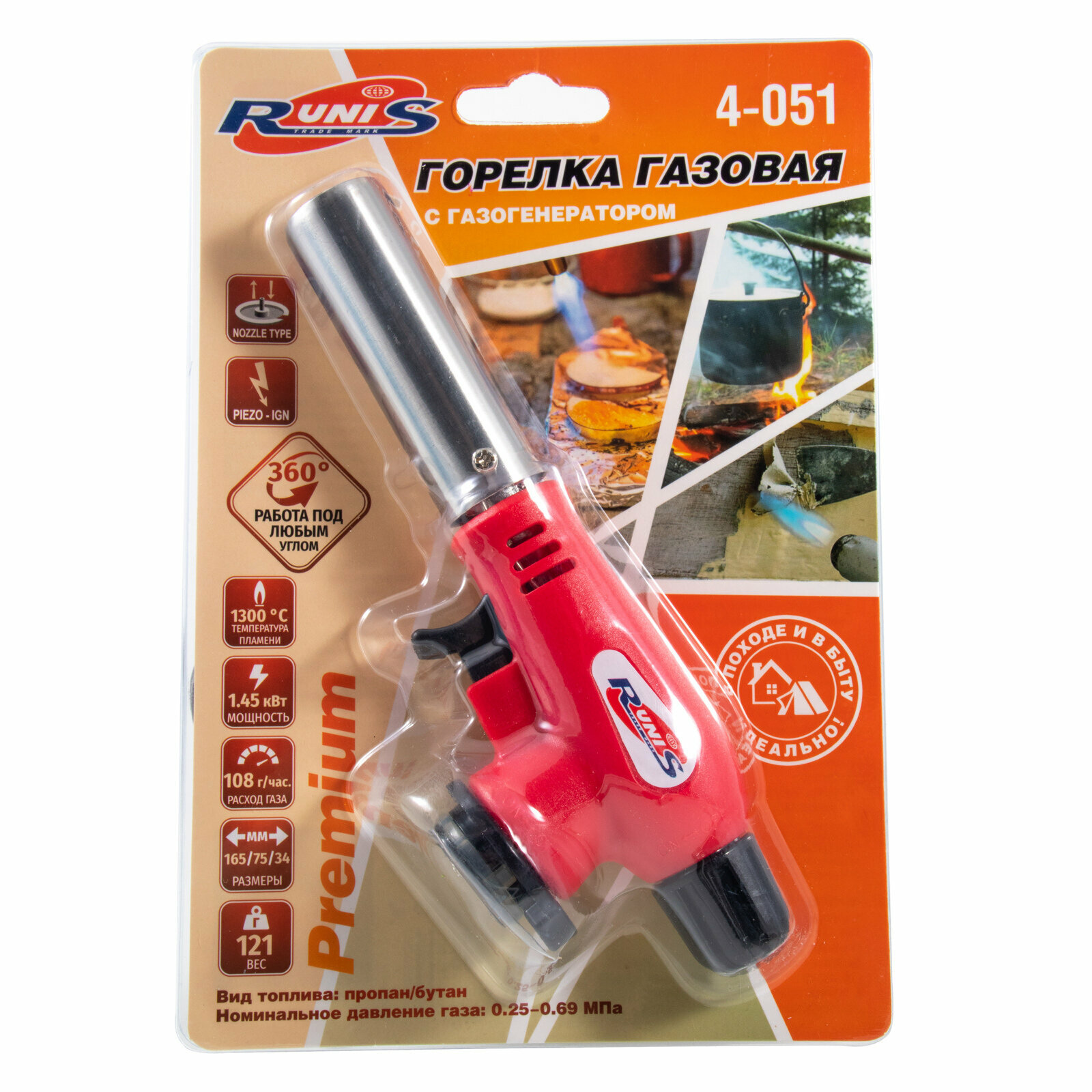 Купить Горелка газовая (газогенератор) Premium P04 пьезоподжиг, на цанговый баллон RUNIS 4-051