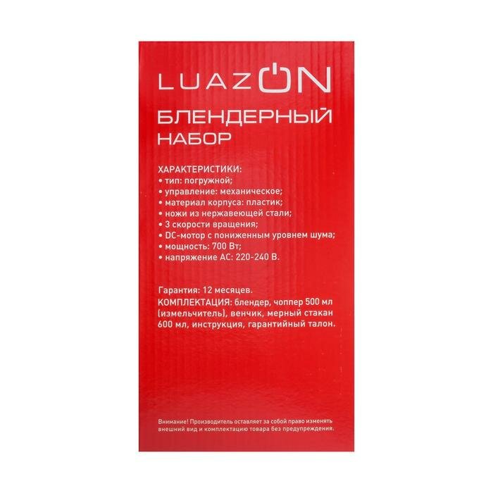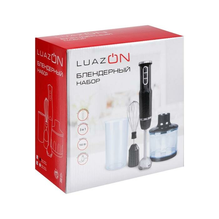 Купить Блендер Luazon Home LBR-02, погружной, 650 Вт, 0,3, 0,6 л, 3 скорости, черный