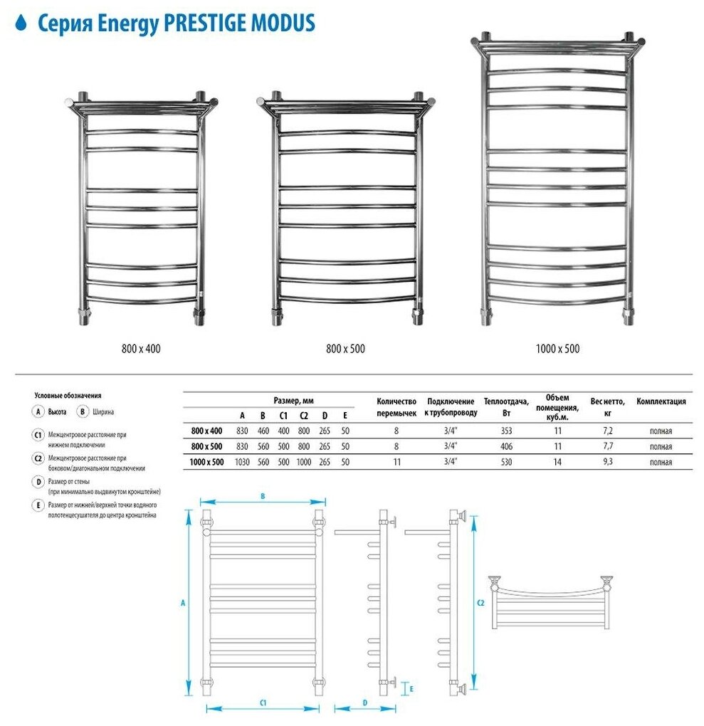 Energy Prestige Modus 800x500 Водяной полотенцесушитель