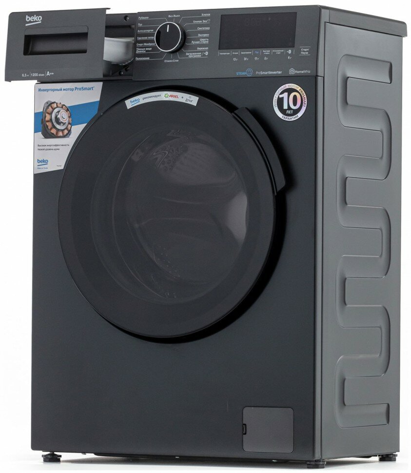 Стиральная машина Beko WSPE6H616S, инверторная, загрузка 6.5 кг, 1200 об/мин, серый