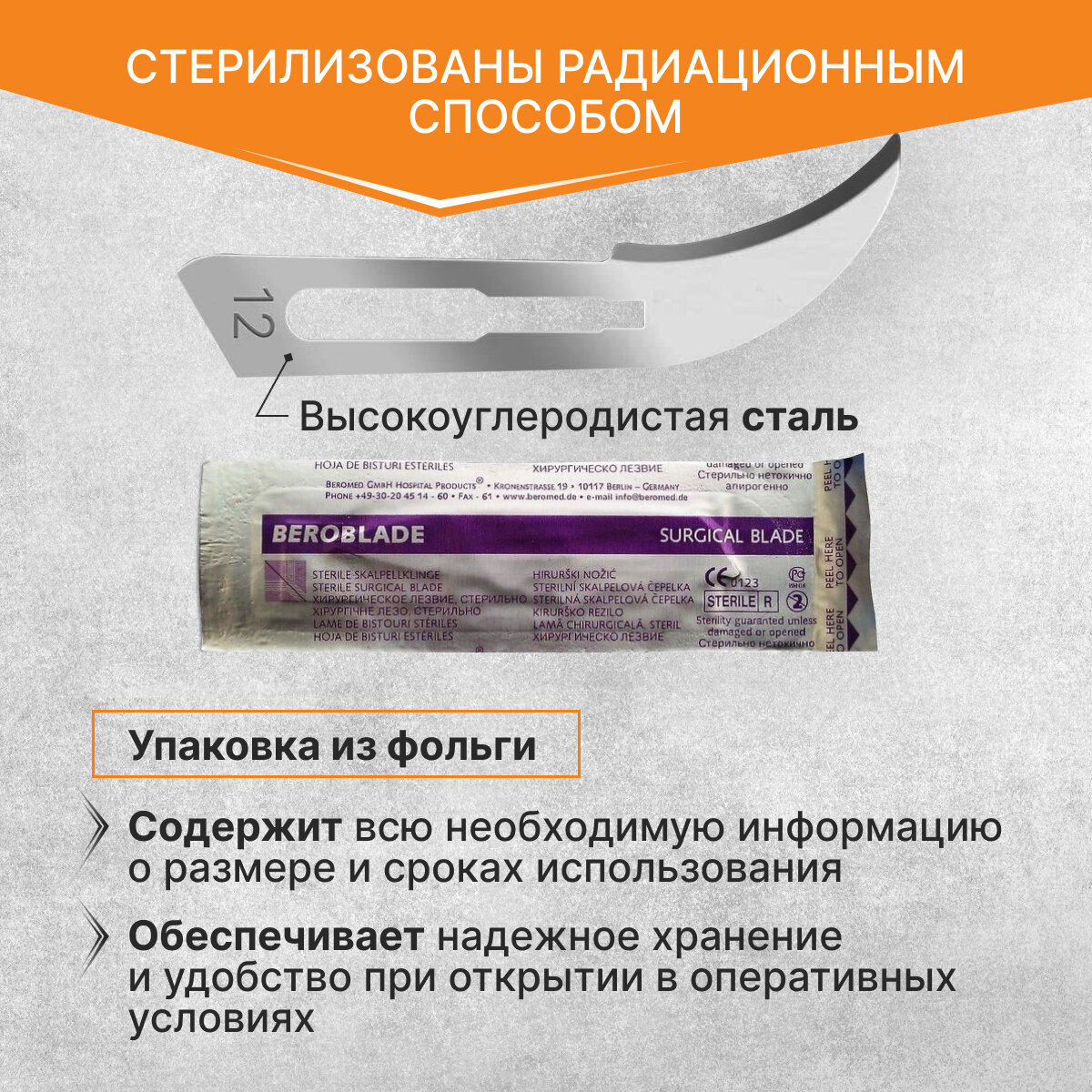 Лезвие для скальпеля стер.из в/углерод. стали р-12 Beroblade 100шт/уп интересное: