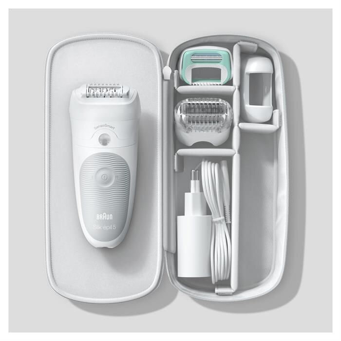 | Подробная комплектация | эпилятор Silk-epil 5 SensoSmart, бритвенная головка, насадка для триммера, колпачок для начинающих, колпачок для контакта с кожей, мягкий дорожный чехол лимитированной серии, щетка для чистки, кабель питания |