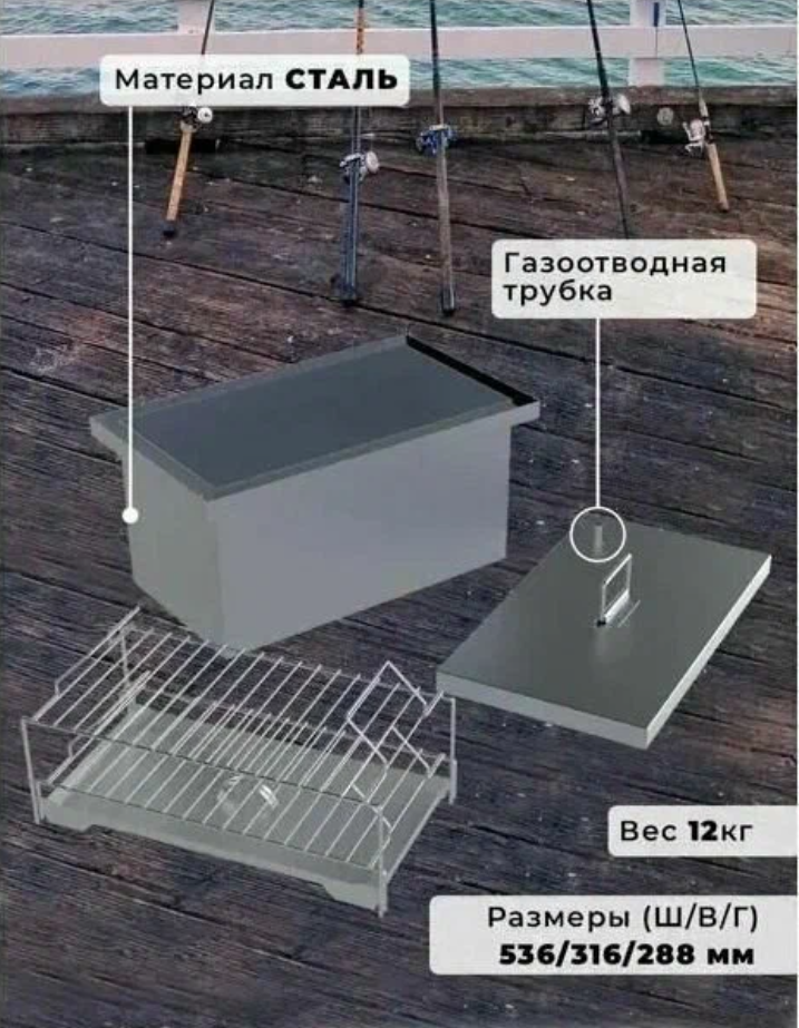Коптильня нержавеющей стали Grillux Smoky Boom (Нержавеющая сталь), 53,6х28,8х31,6 см интересное:
