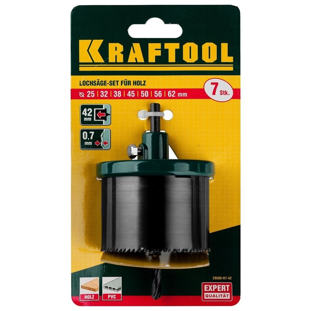 KRAFTOOL 7шт(25-62 42мм) пила сегментная наборная по дереву 25-32-38-45-50-56-62х42мм, (29580-H7-42)