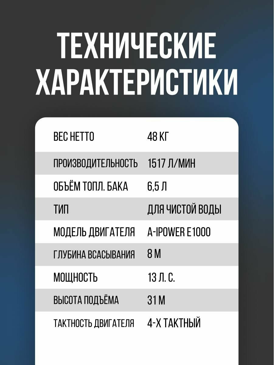 A-ipower Мотопомпа бензиновая A-iPower AWP100TХ интересное: