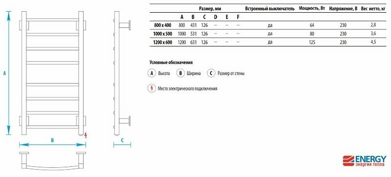 Электрическийй полотенцесушитель Energy Grand 1000x500