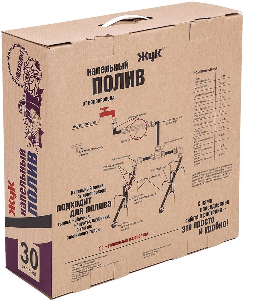 Комплект капельного полива грядок от водопровода "Жук", на 30 растений (1 грядка 6 метров), пластик, в коробке (Россия) интересное: