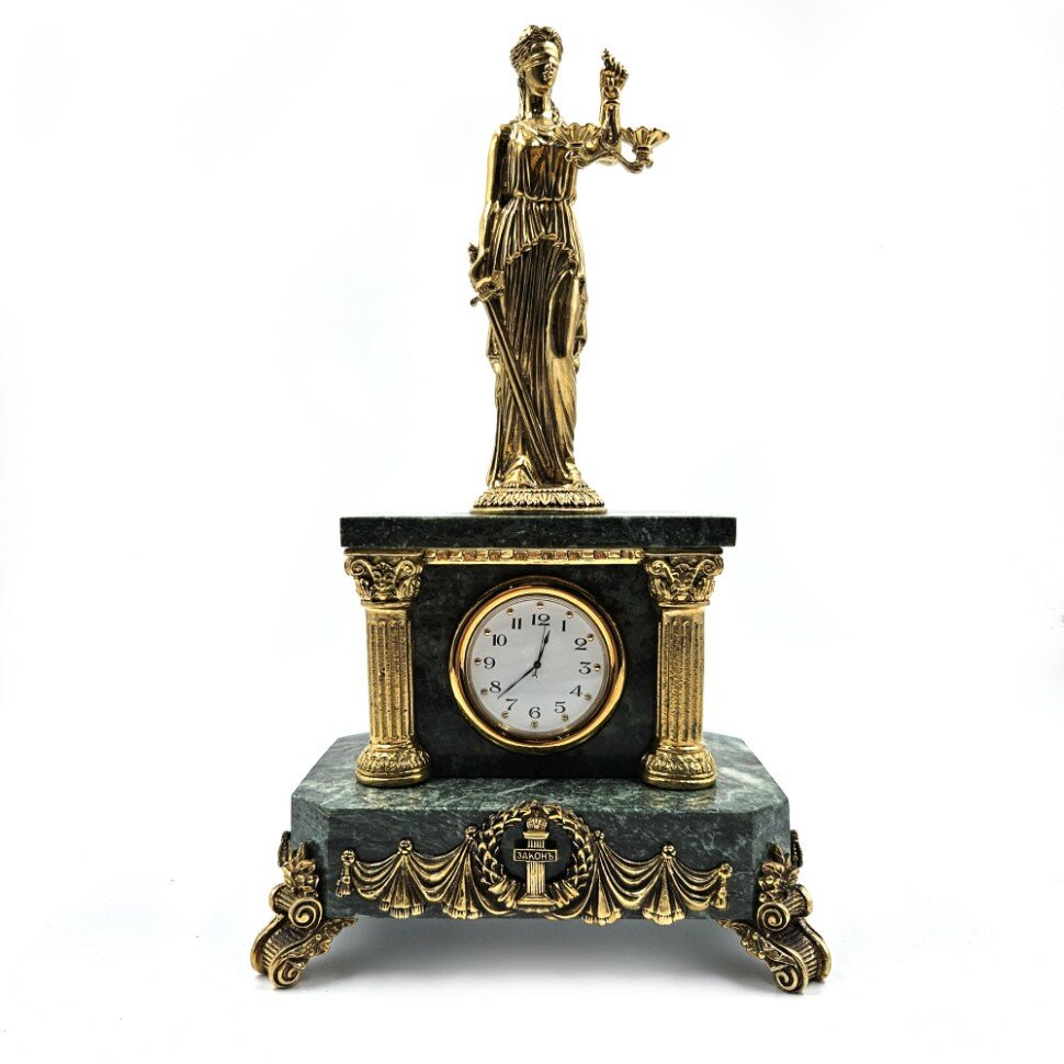 Купить Подарки Настольные часы "Фемида" из бронзы и змеевика (27 см)