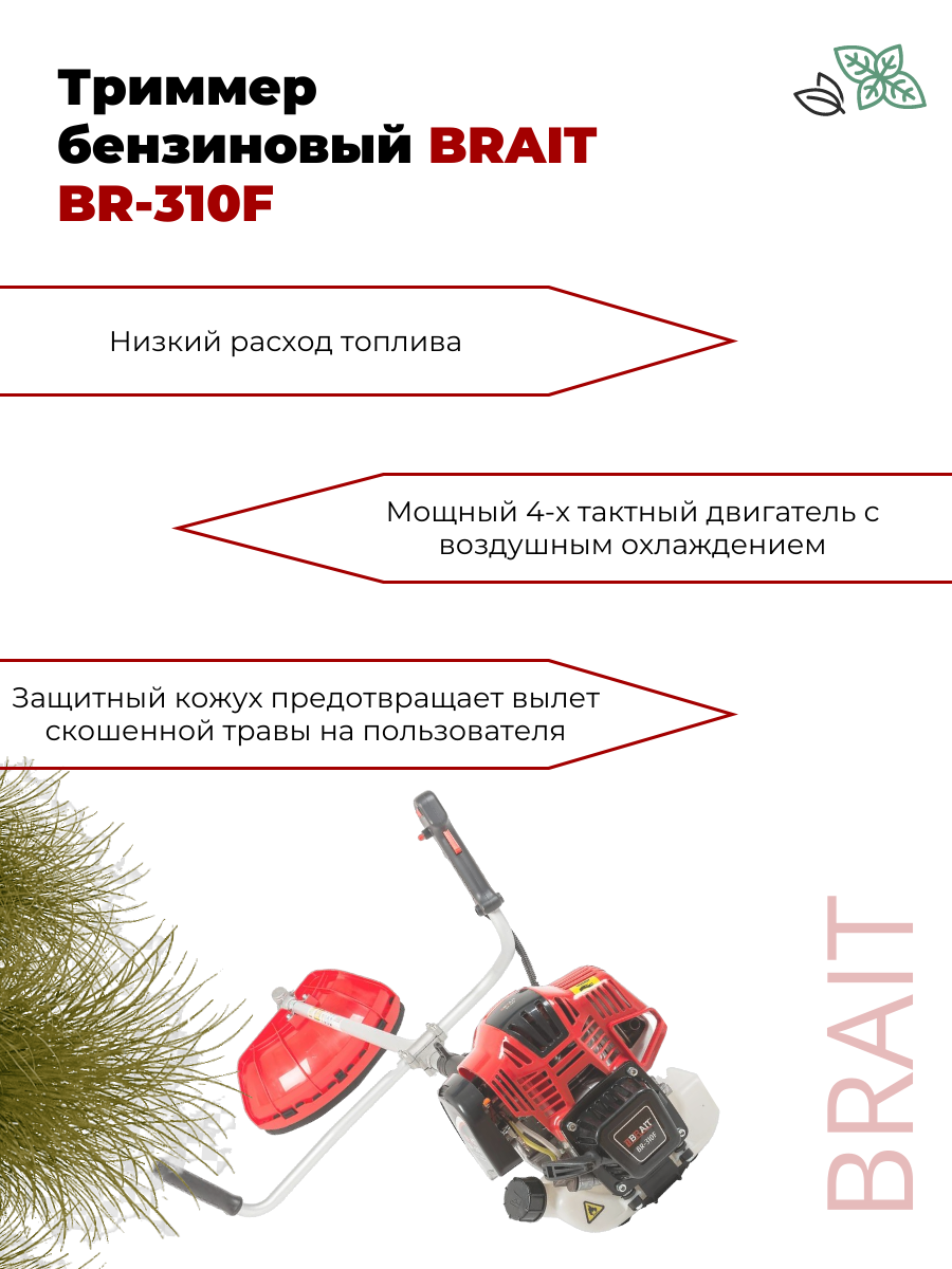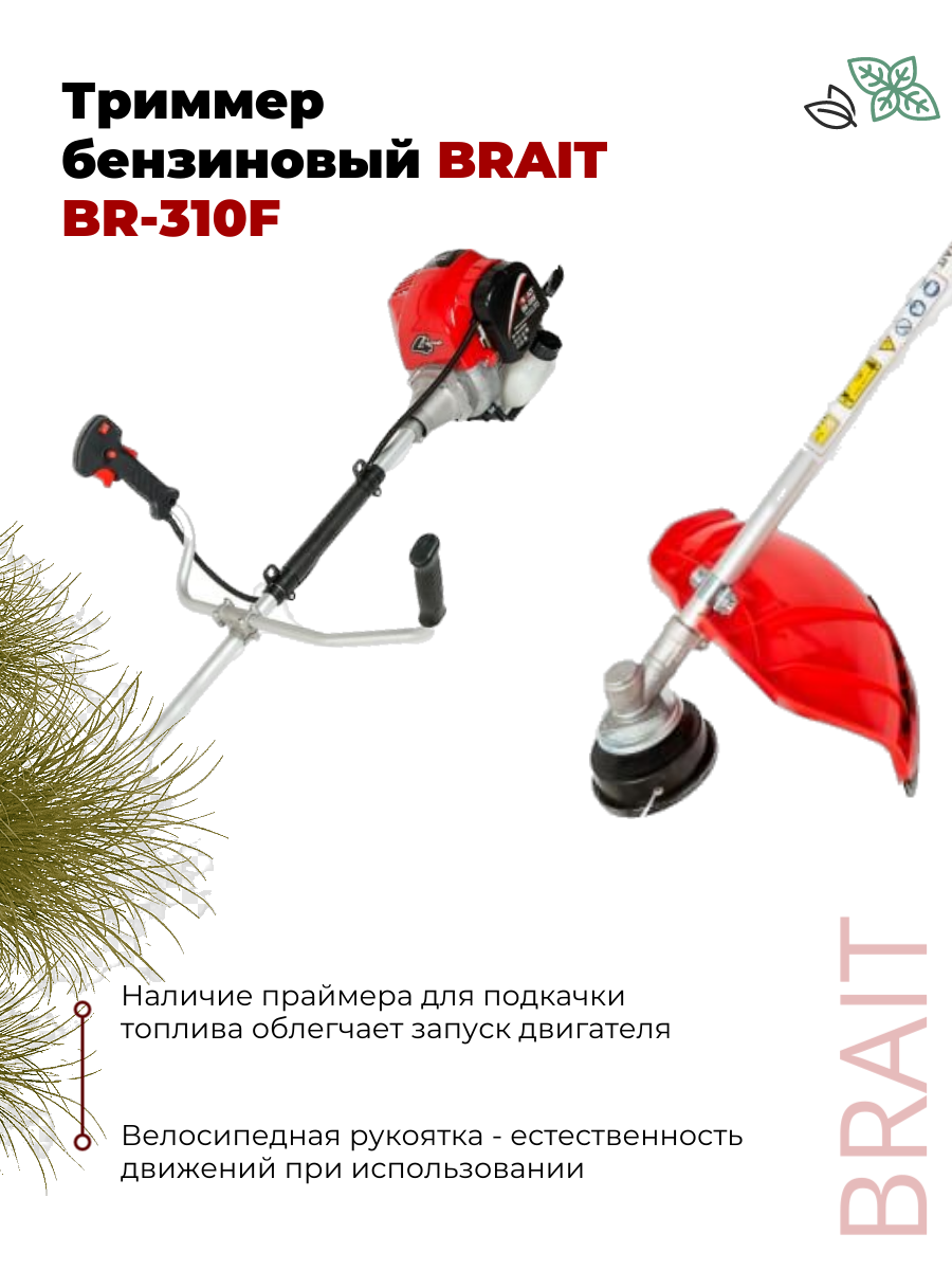 Бензиновый триммер BRAIT BR-310F (850Вт, 4Т двиг, 0,31см, диск 40Т, леска 2,4) интересное:
