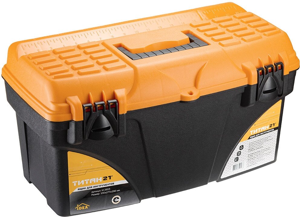 Контейнер-ящик для инструментов пластмассовый "Титан 21" 53х28x29см, черный с желтым (Россия) интересное: