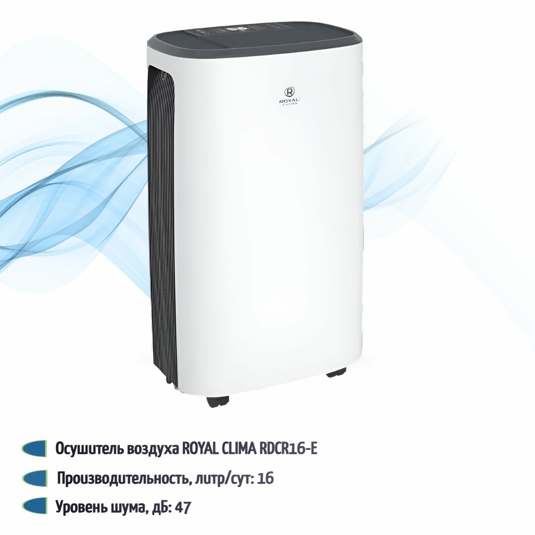 Осушитель воздуха Royal Clima Rd-cr16-e, 260 Вт, 2л, до 23 м2, бело-серый Royal Clima 7998360 .
