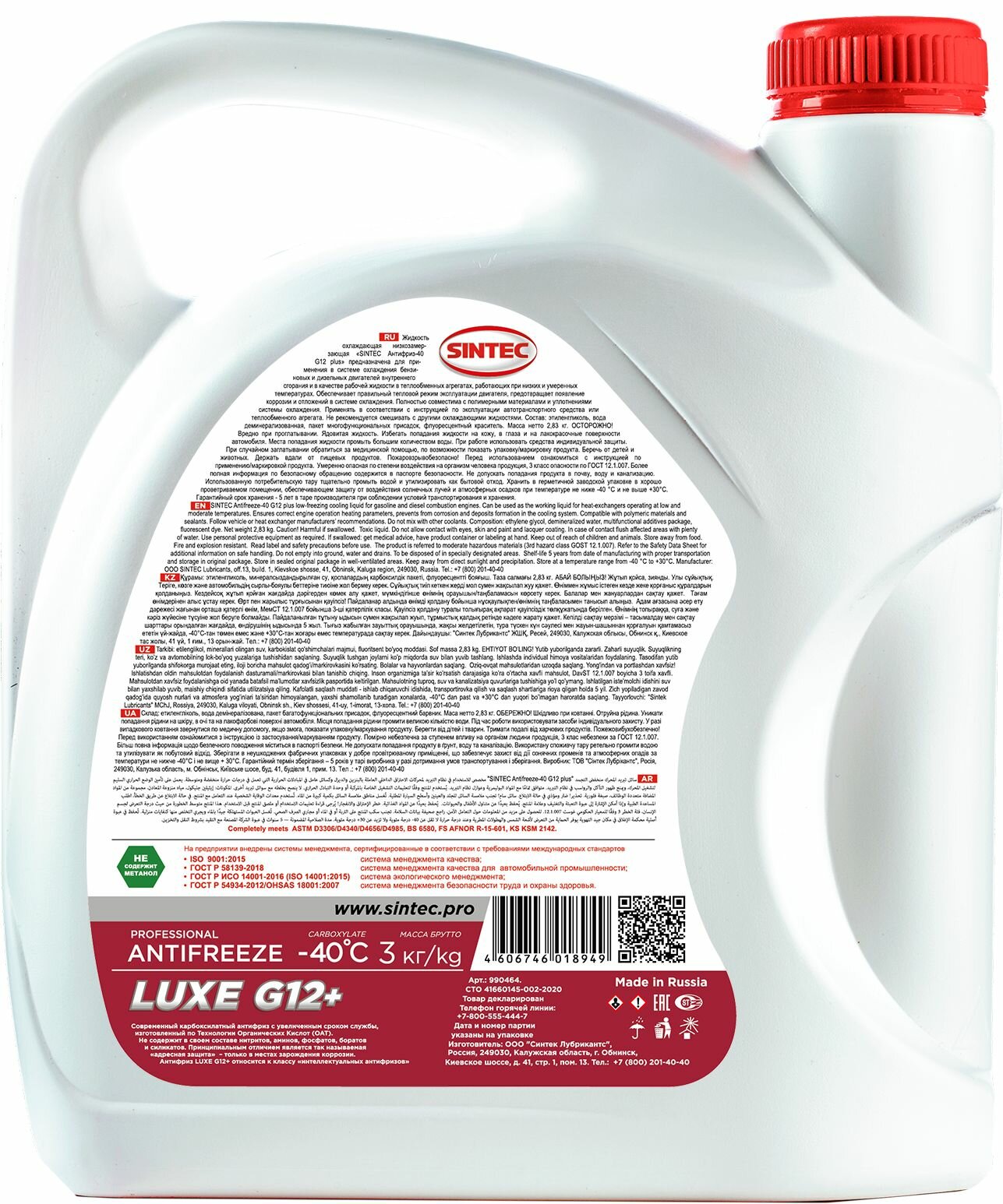 Sintec Antifreeze Luxe G12+ Red -40 3Кг SINTEC арт. 990464