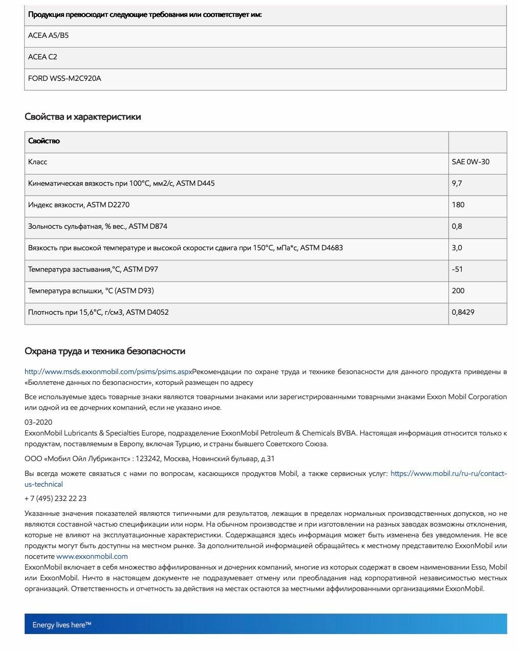 | Класс вязкости SAE | 0W-30 |