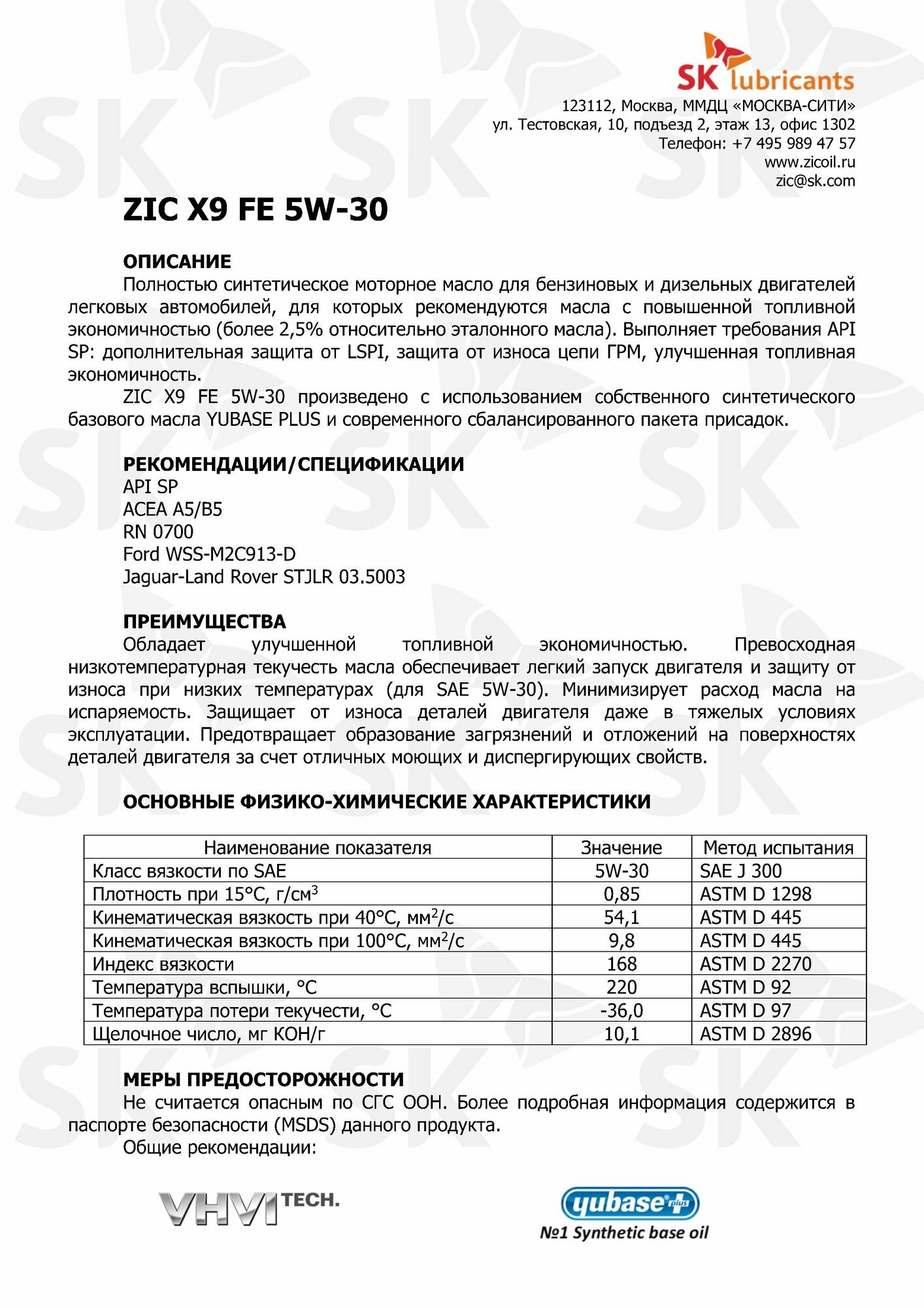 Минус за обман. Вместо ZIC X9 FE 5W-30, прислали ZIC X9 5W-30. Обидно, досадно. Сплошной обман покупателя. ? |