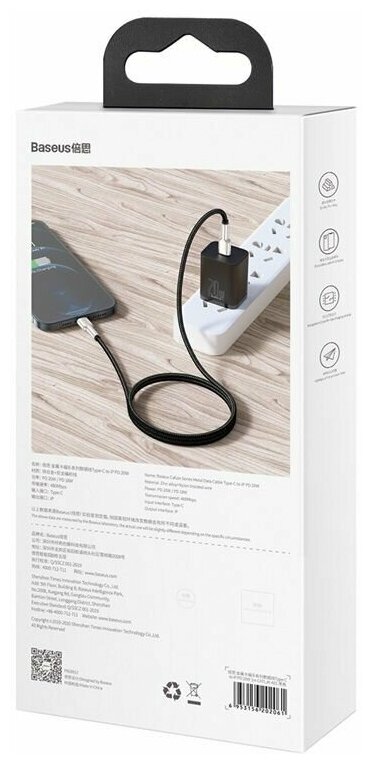 Кабель Xiaomi Baseus Cafule Series Metal Data Cable Type-C to iP PD20W Fast Charge 1m Black (CATLJK-A01)