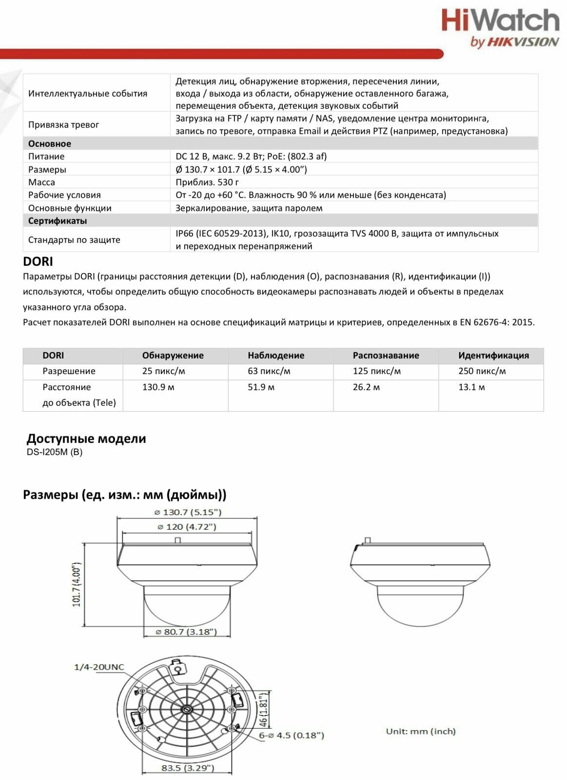 HiWatch DS-I205M(C) 2Мп мини-поворотная IP-видеокамера c EXIR-подсветкой до 20м и микрофоном