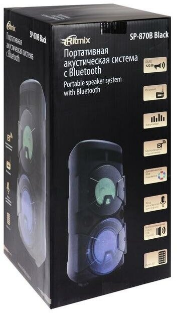 Купить Портативная колонка Ritmix SP-870B, 120 Вт, Bluetooth, AUX, microSD, FM, 4400 мАч, чёрная