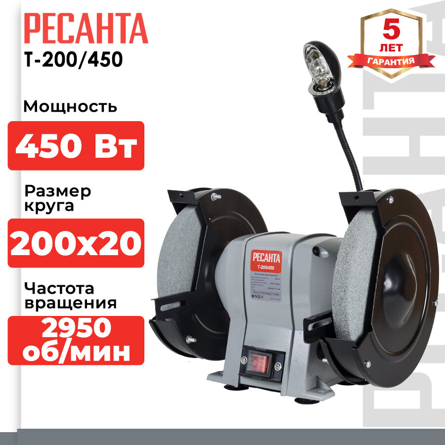 Станок точильный Ресанта Т-200/450, 450 Вт, 200 мм