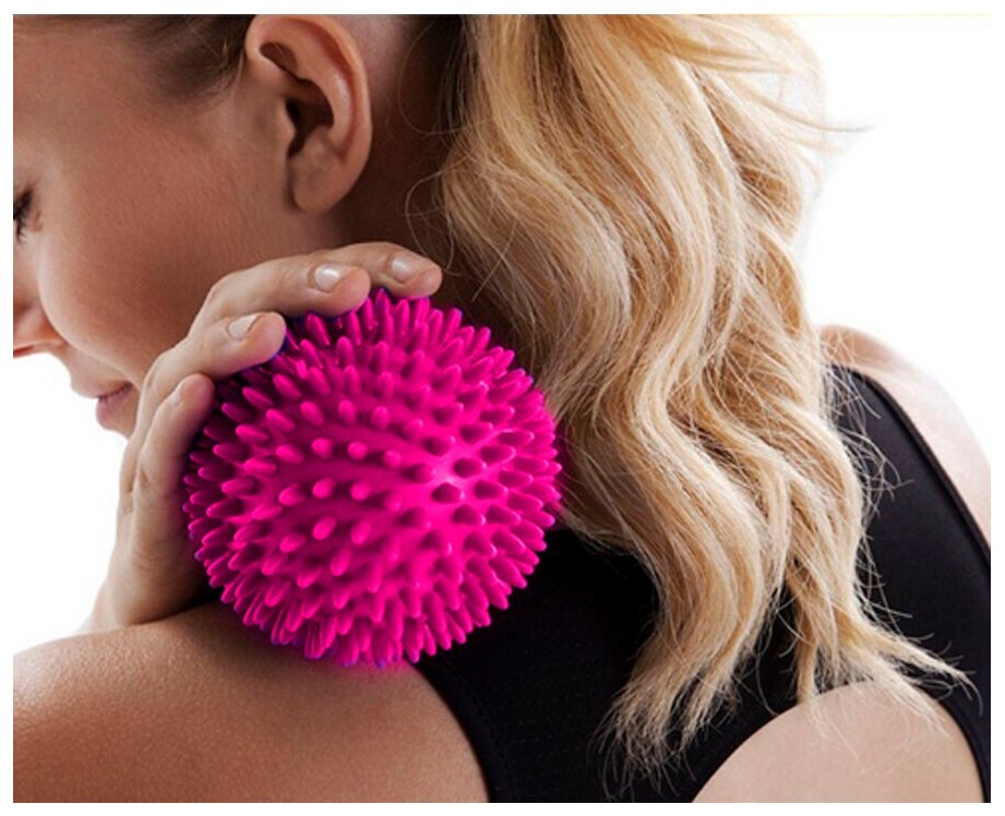 Данный массажный мяч хорош тем, что за счет него можно быстро снять болевые ощущения и ослабить напряжение мышц в любой точке тела. За счет резиновых шипов, которым оснащен сам мяч, удается снять усталость и дискомфорт, при этом массаж таким мячом, помогает улучшить так же и кровообращение.