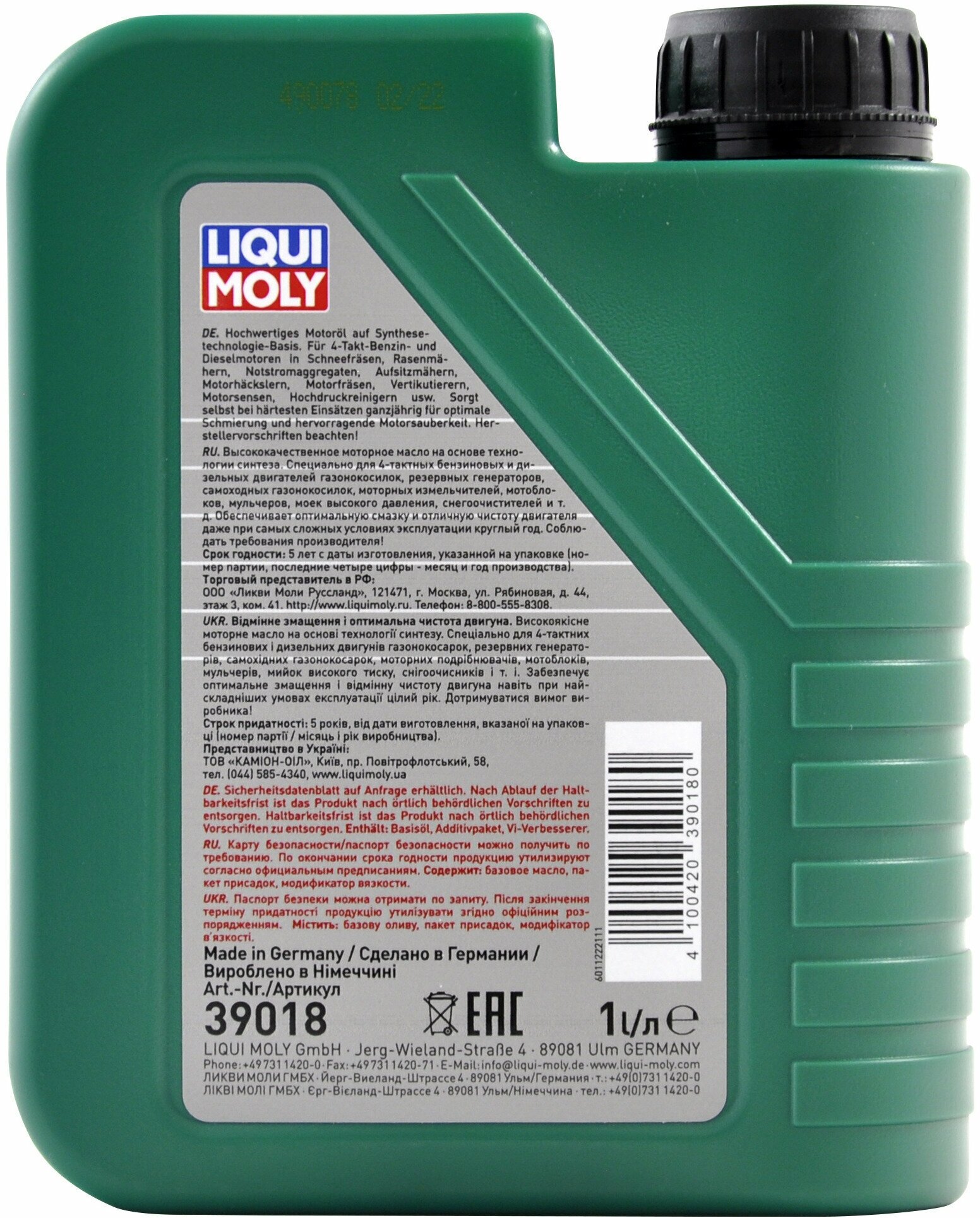 Масло моторное Garten-Wintergerte-l 5W-30 (НС-синтетическое) всесезонное моторное масло для садовой техники LIQUI MOLY / арт. 39018 - (1 шт)