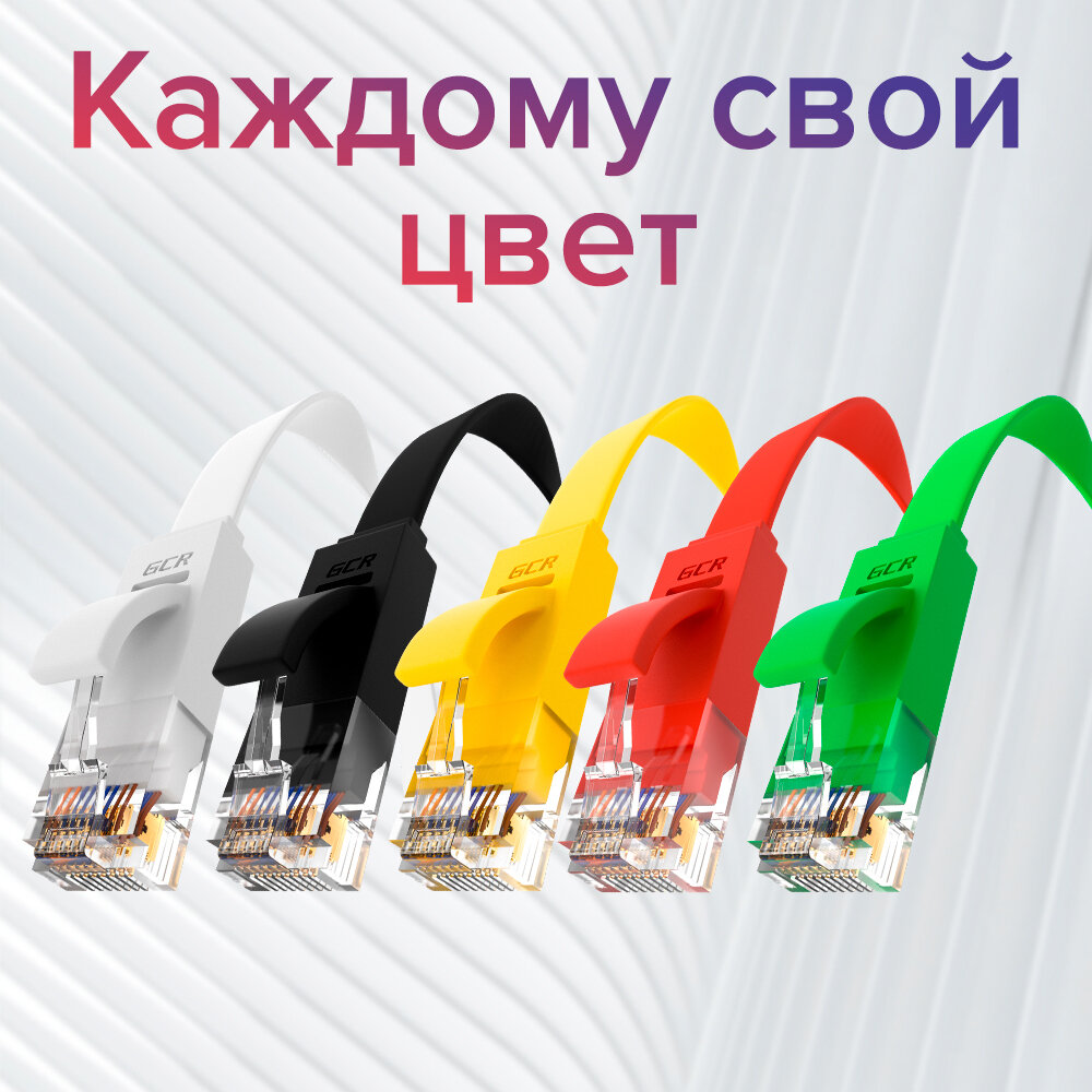LAN кабель 15м GCR PROF плоский UTP cat.6 10 Гбит/с RJ45 LAN компьютерный кабель для интернета медный контакты 24K GOLD (GCR-LNC62) желтый