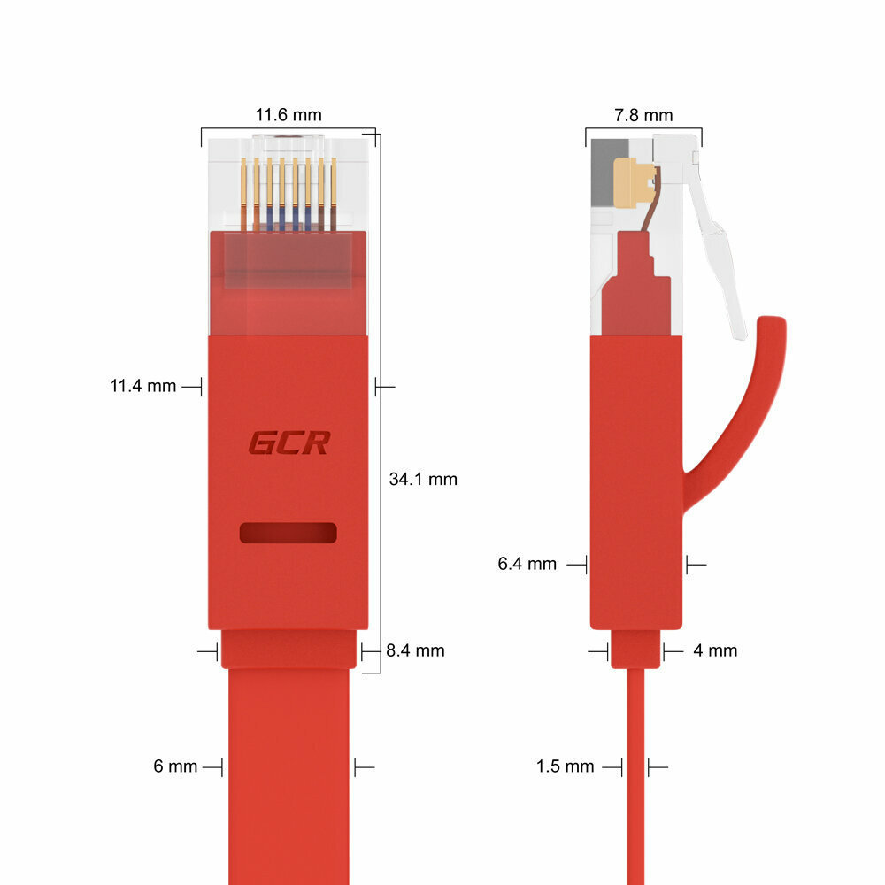 Патч-корд GCR PROF плоский UTP cat.6 10 Гбит/с RJ45 LAN кабель для интернета контакты 24K GOLD (GCR-LNC62) красный 1.0м