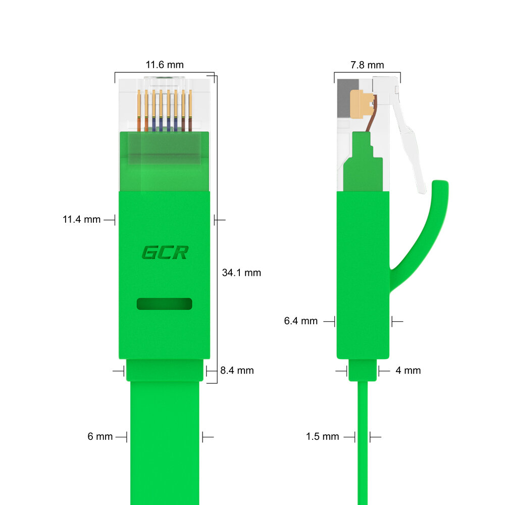LAN кабель 15м GCR PROF плоский UTP cat.6 10 Гбит/с RJ45 LAN кабель для интернета медный контакты 24K GOLD (GCR-LNC62) зеленый