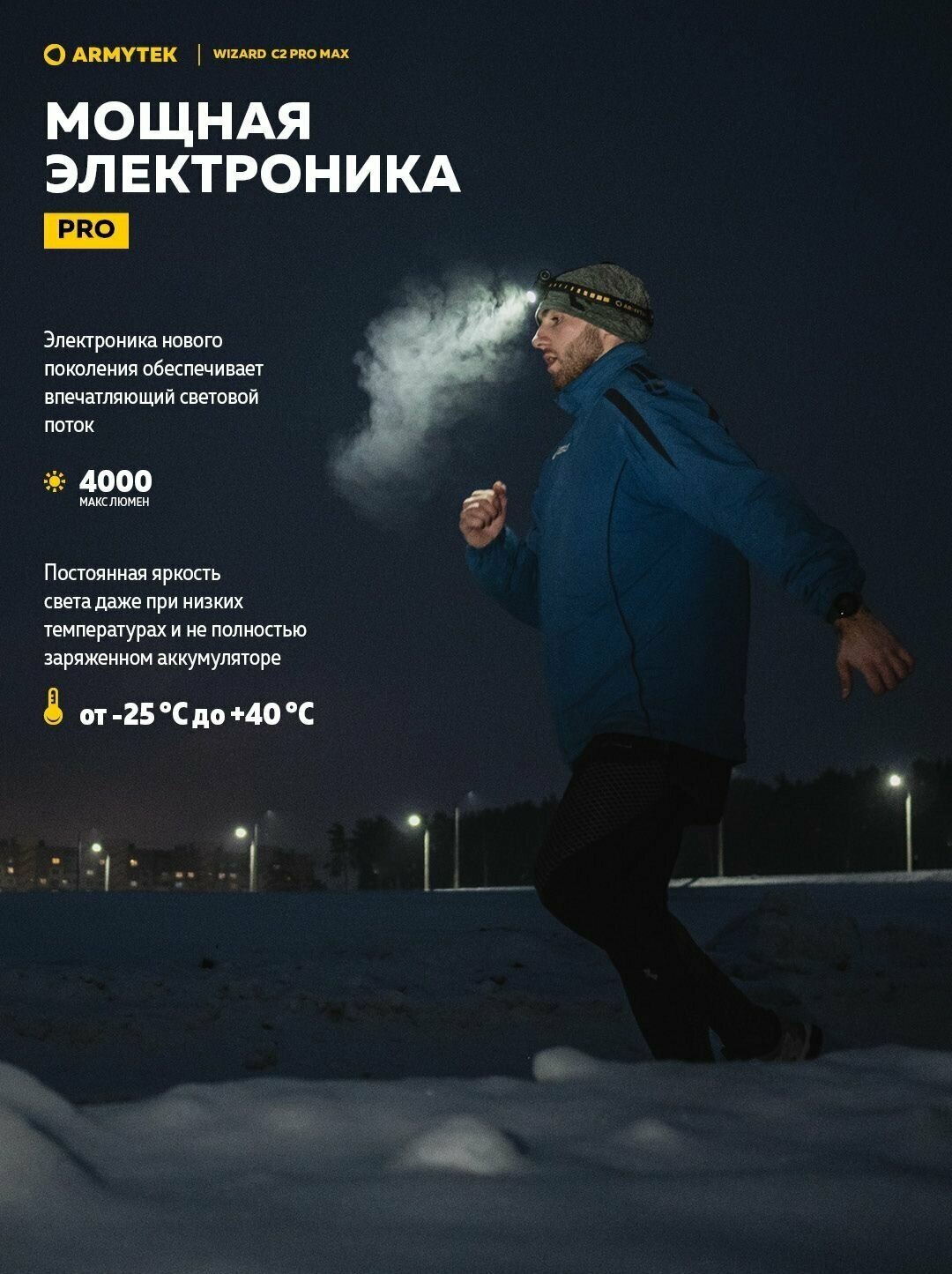 Фонарь налобный Armytek светодиодный Wizard C2 Pro Max Magnet USB, 4000 лм, холодный свет, аккумулятор