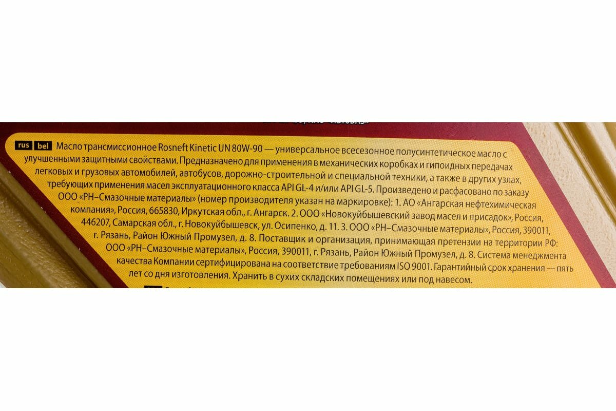 Масло трансмиссионное роснефть KINETIC UN GL-4/5 80W90 1л