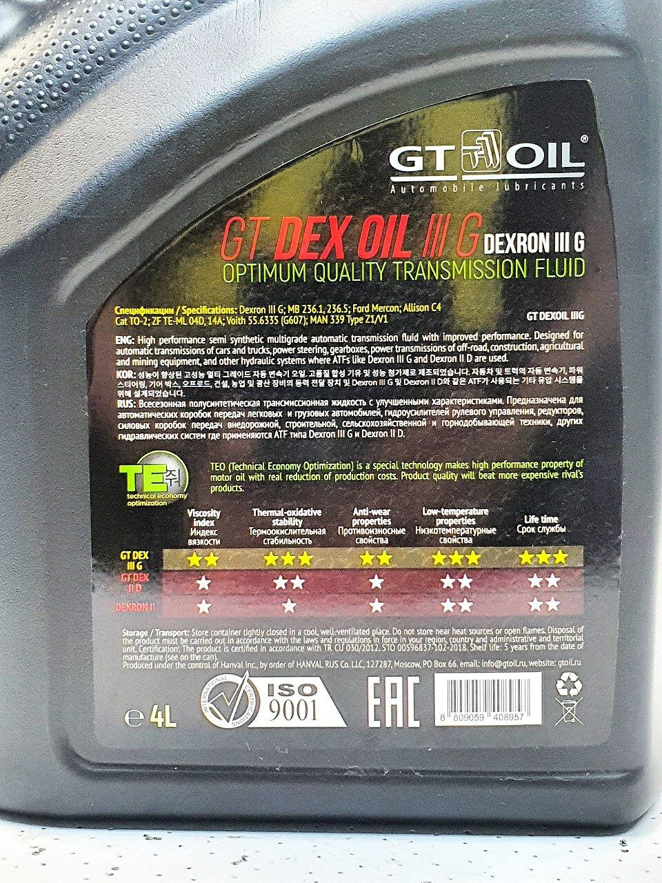 Масло Трансмиссионное Gt/Жт Oil Dex Oil Iii G Полусинтетическое 4 Л 8809059408957 GT OIL арт. 8809059408957