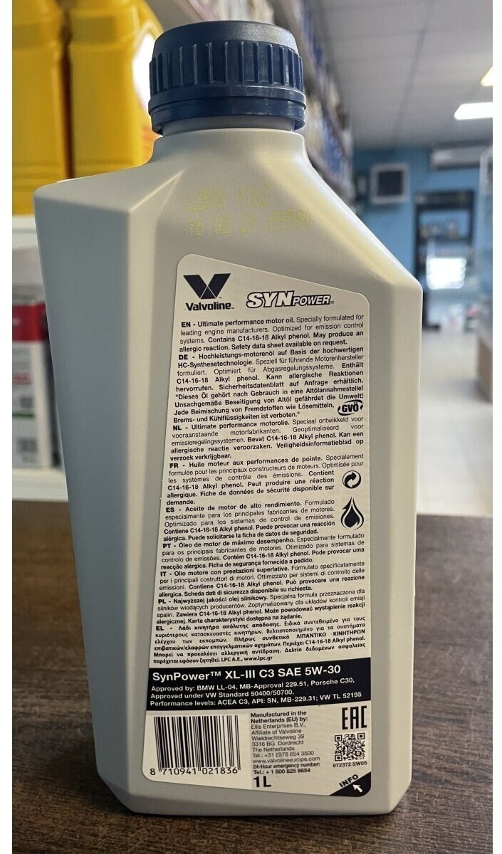 VALVOLINE 872372 SYNPOWER XL-III C3 5W30 1 SW,