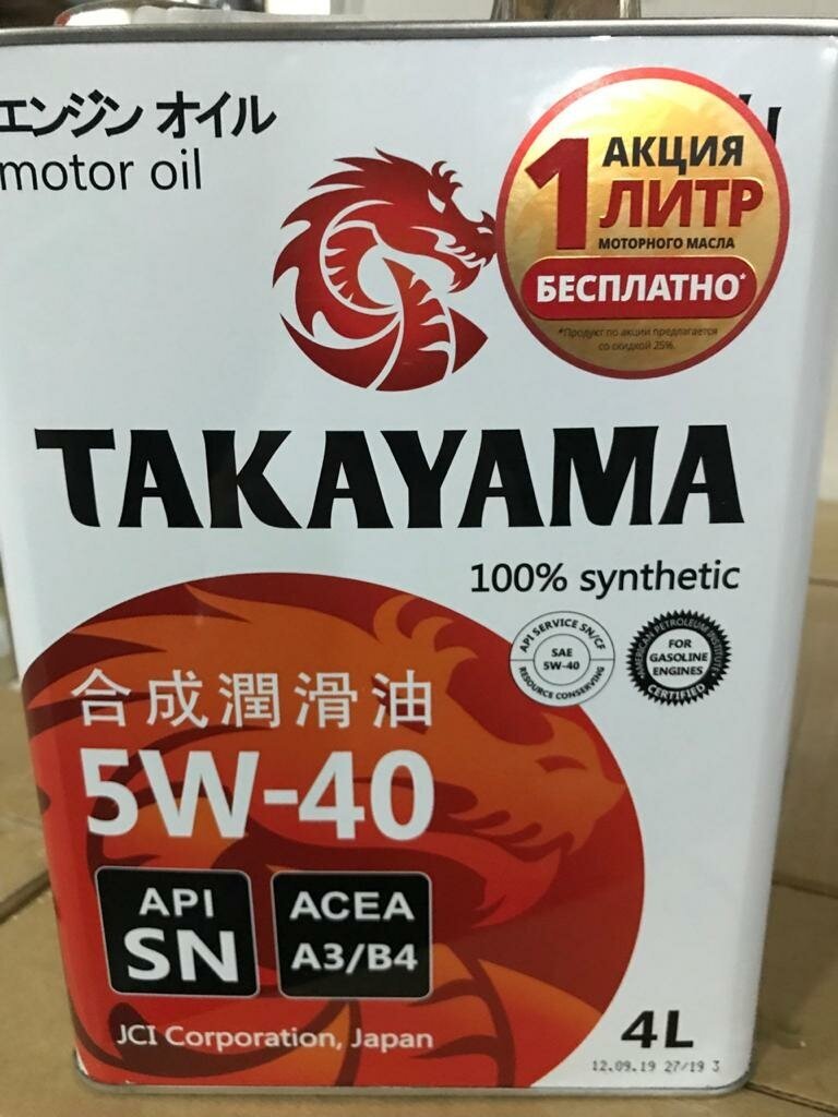 Автомобильное масло 5w40, масло моторное 5w40 4л + 1л, TAKAYAMA 5W40 API SN/CF 4л + 1л