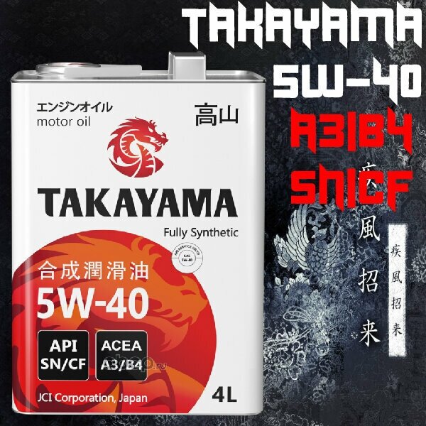 Моторное масло TAKAYAMA SAE, 5W-40, 4л, синтетическое [605045]