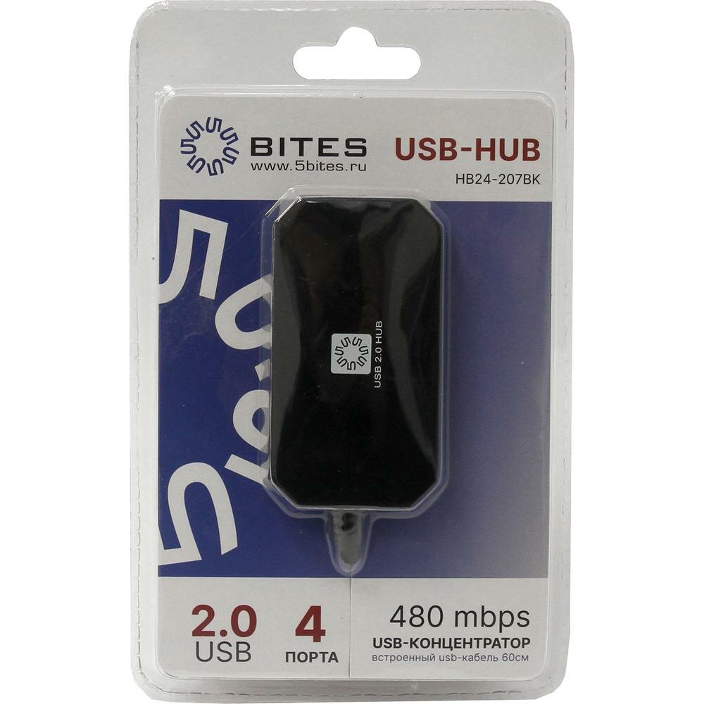 Разветвитель USB 2.0 5BITES HB24-207BK 4*USB2.0 / USB 60CM / BLACK