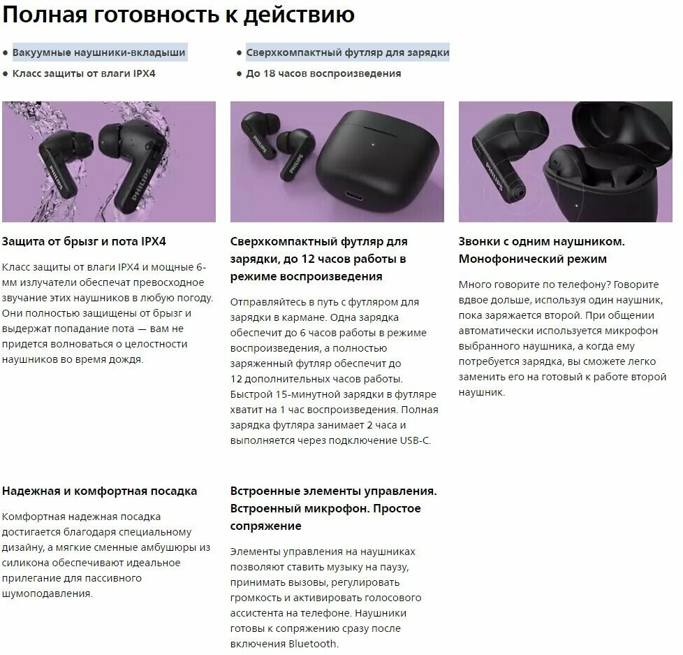 Ниже Вы можете прочитать отзывы на Philips TAT2206BK/00 black беспроводные внутриканальные tws наушники, ознакомится с подробными характеристиками, посмотреть интересные обзоры и фотографии на Philips TAT2206BK/00 black беспроводные внутриканальные tws наушники.