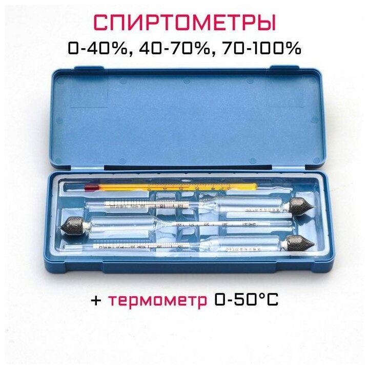 Купить --- Набор спиртомеров 3 шт: 0-40, 40-70, 70-100, + жидкостный термометр