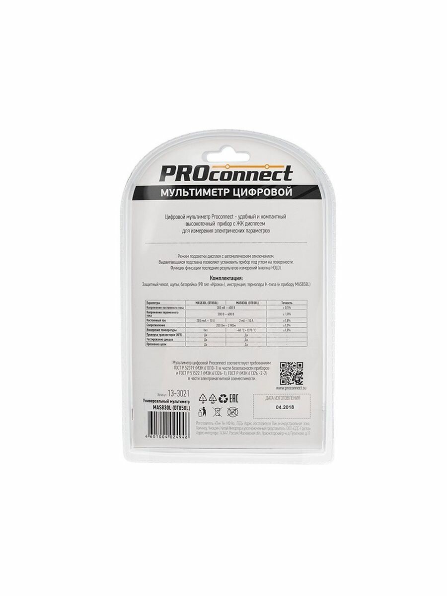 Универсальный мультиметр Mas830l (dt850l) PROconnect 13-3021 PROconnect 13-3021 .