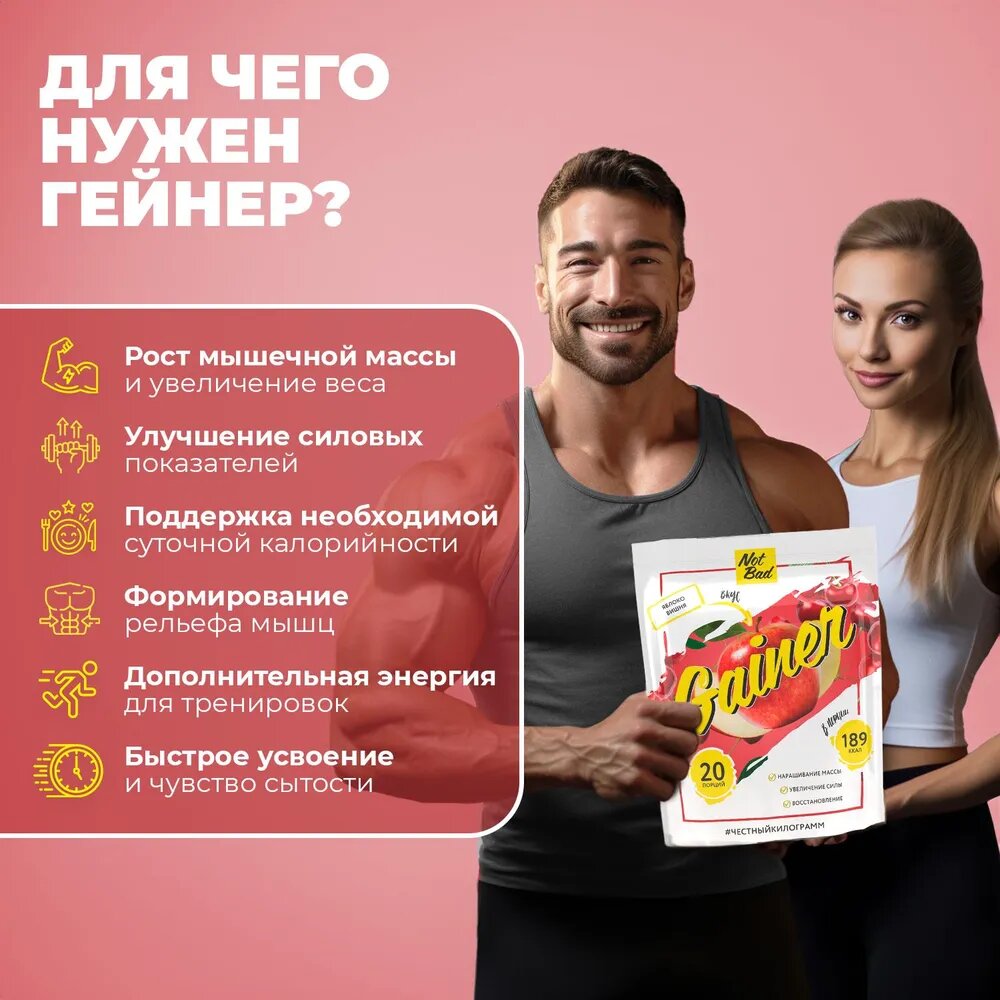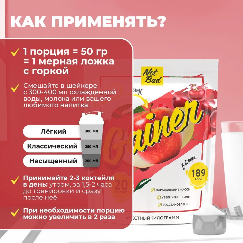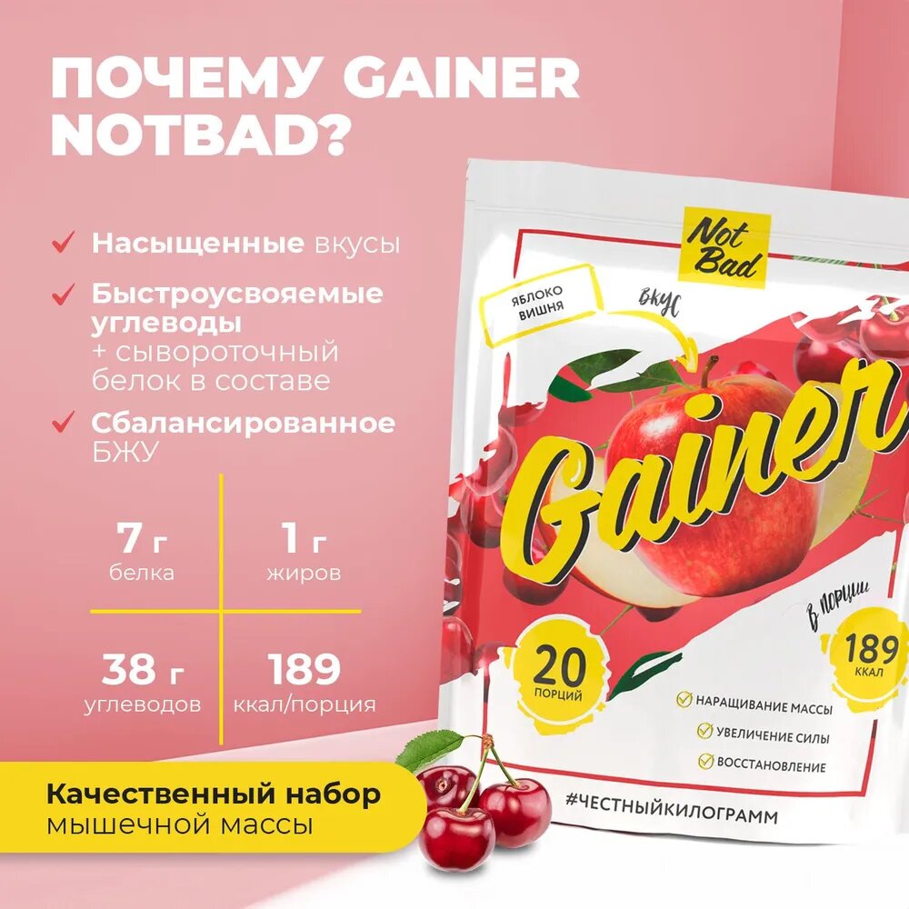 Купить NotBad GAINER 1000 gr, 20 порции(й), яблоко вишня